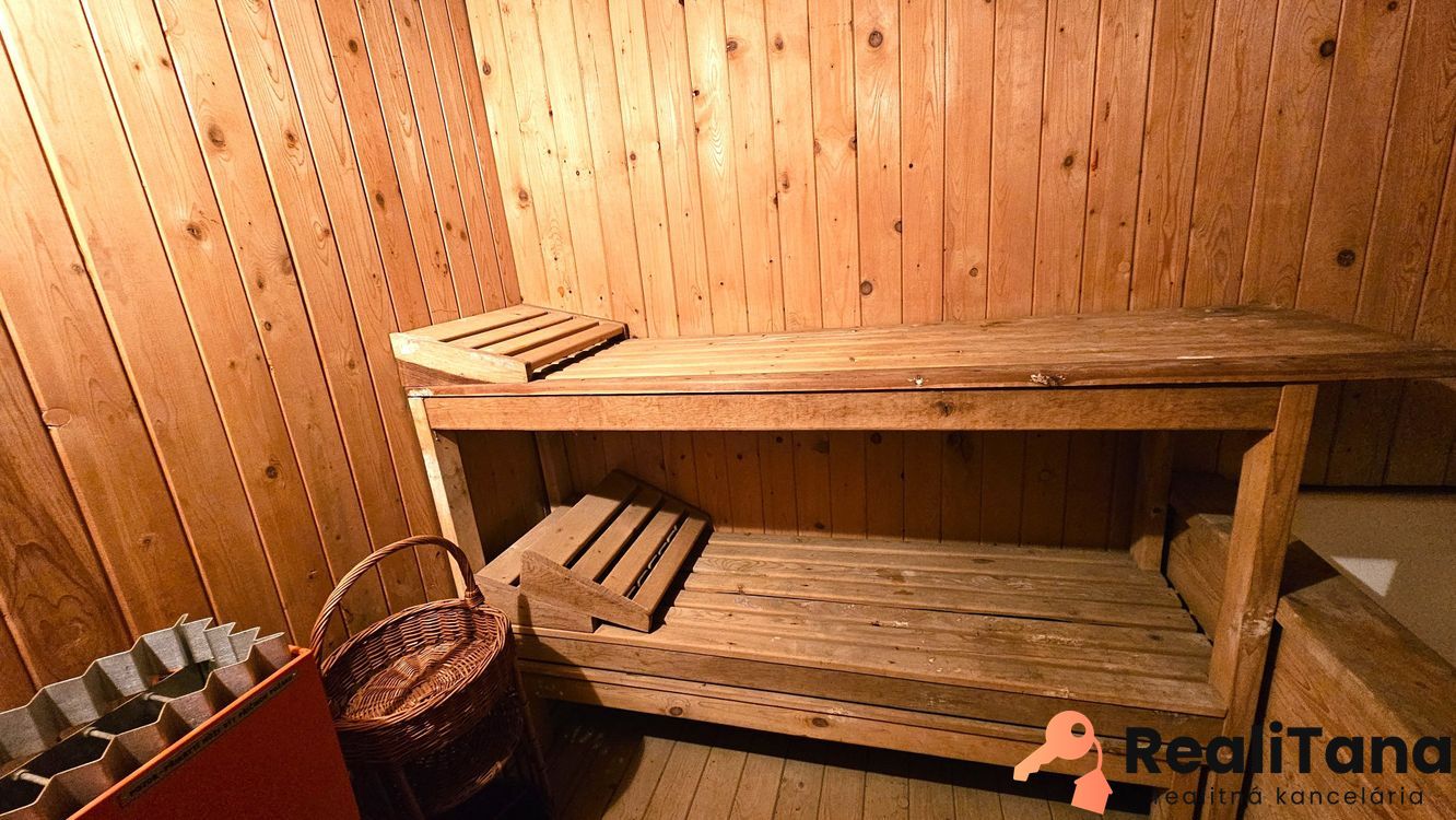 Dvojgaráž s montážnou jamou, jedna časť je vykurovaná, práčovňa, pivnica, technická miestnosť, vináreň, sauna