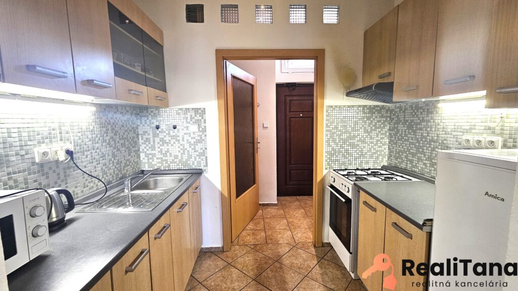 – bezpečnostné dvere, vstupná chodba s rolldor skriňami, kuchyňa (chladnička s mrazničkou, mikrovlnná rúra, plynový šporák, rýchlovarná konvica, riad), obývačka (rozťahovacia rohová sedačka, nábytok, stolík so stoličkami, TV), spálňa s manželskou posteľou a skriňami, spálňa s váľandou (je možnosť dodať druhú váľandu), kompletne zrekonštruovaná kúpeľňa so sprchovým kútom a WC (práčka). Nehnuteľnosť sa nachádza na pavlači na 2 poschodí. Vstupná brána je na kľúč. Je orientovaná na západ.
