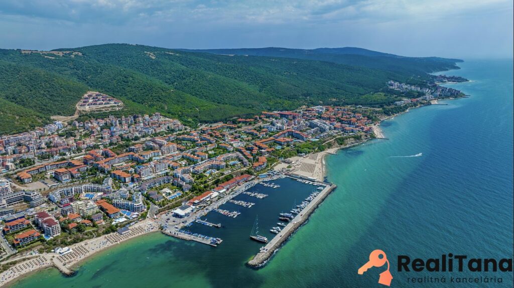 RealiTana Vám s potešením ponúka zariadený dvojizbový apartmán s rozlohou 95 m², ktorý sa nachádza na prízemí v komplexe Vega Village. Komplex je situovaný pri vstupe do prístavu Marina Dinevi. Z apartmánu sa naskytá nádherný panoramatický výhľad na more a Starý Nesebar.
