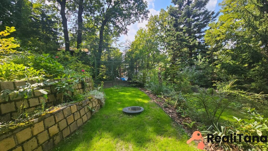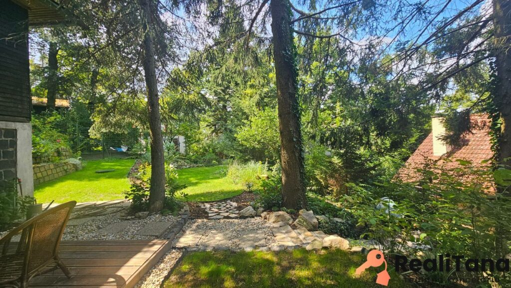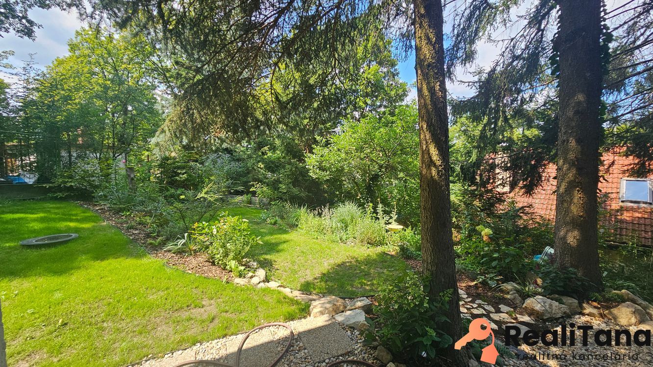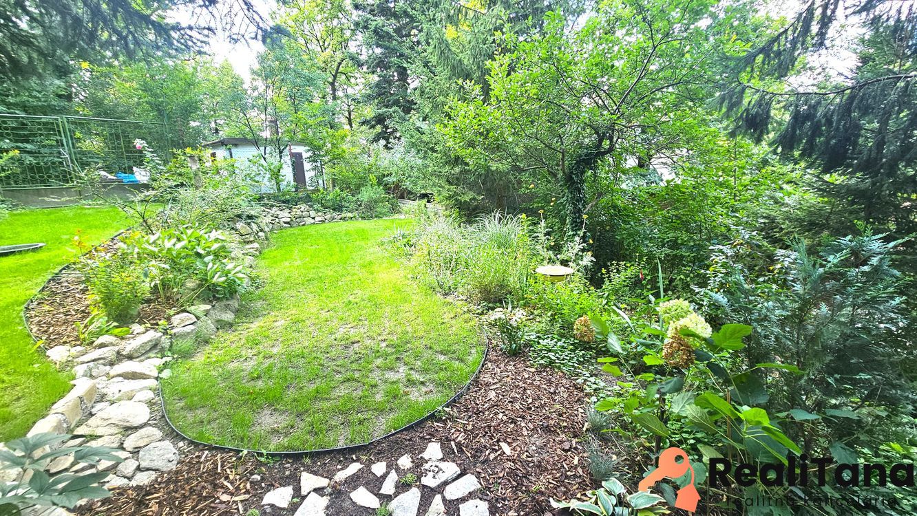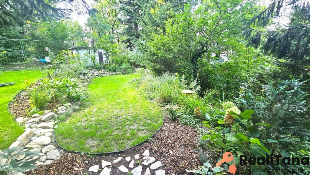 – záhrada je udržiavaná s množstvom rôznych kvetín, okrasných kríkov, stromov