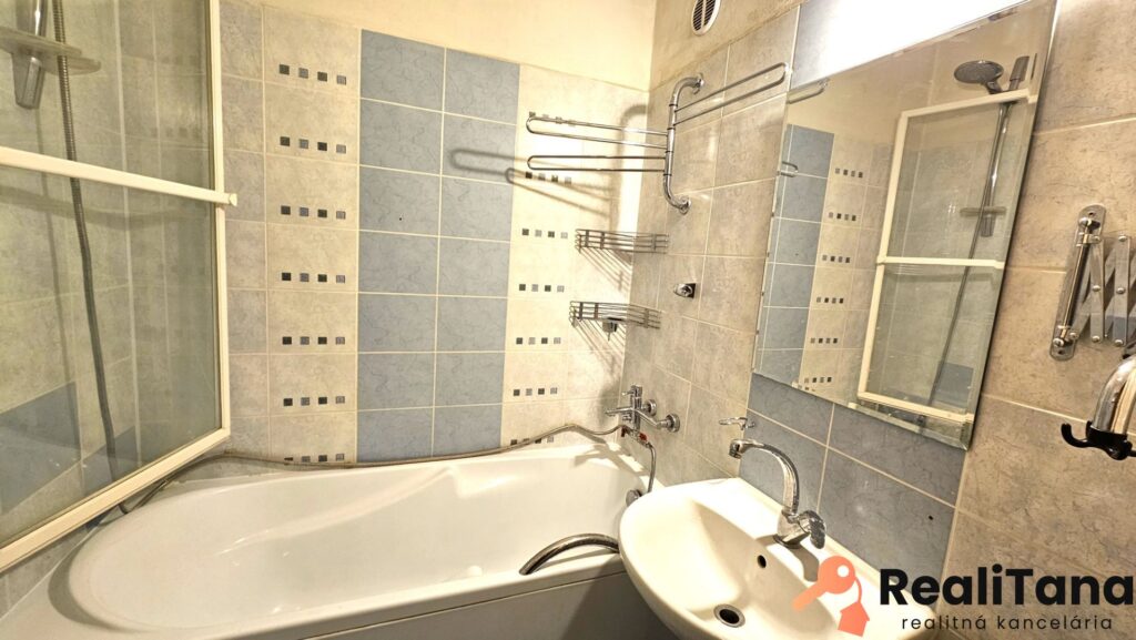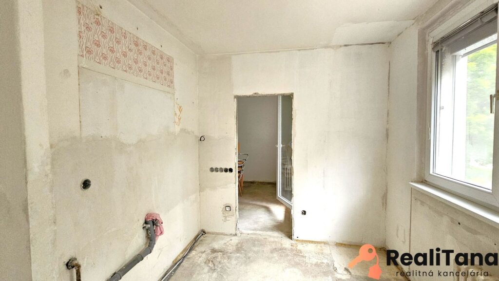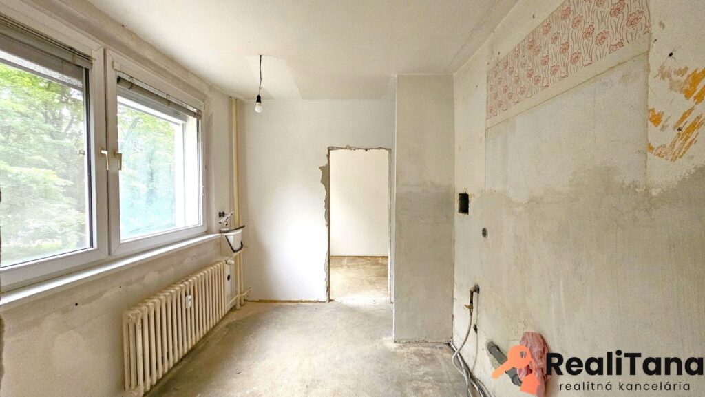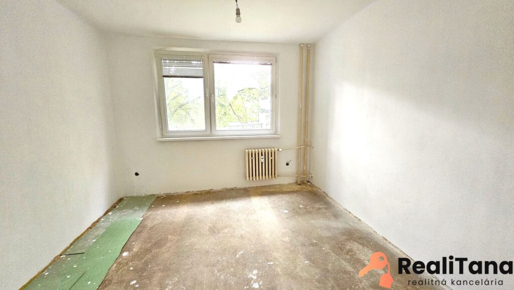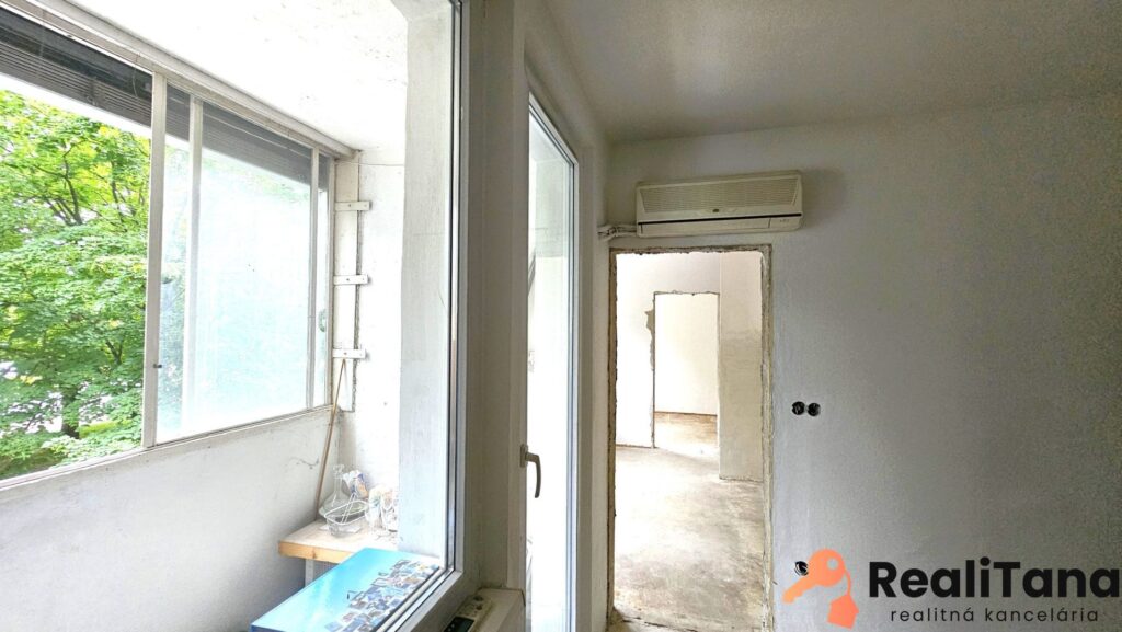 Vstupná priestranná chodba, 1 izba (západ), 2 izba (západ), samostatné WC, kúpeľňa s vaňou (čiastočne zrekonštruovaná), priestranná obývačka s klimatizáciou a loggiou (východ), kuchyňa (východ) a 3 izba (východ).