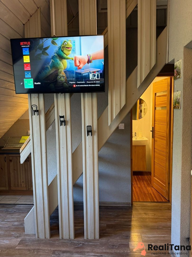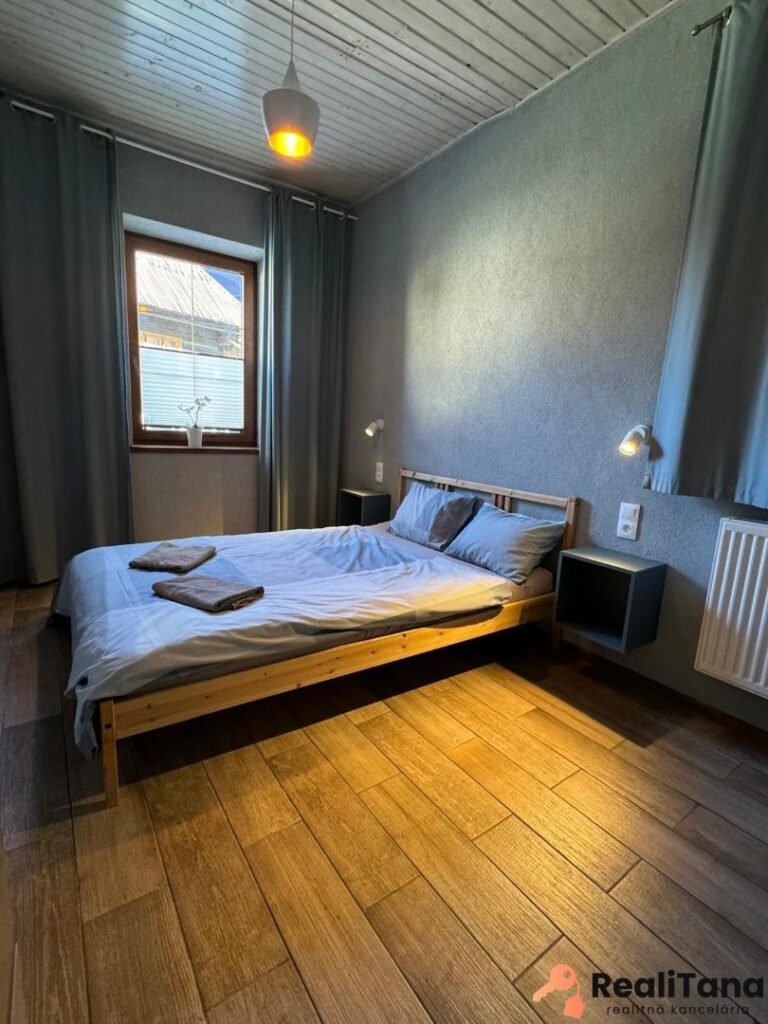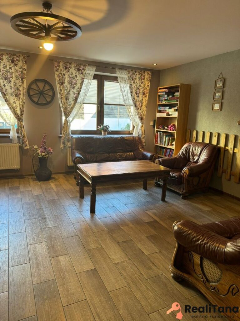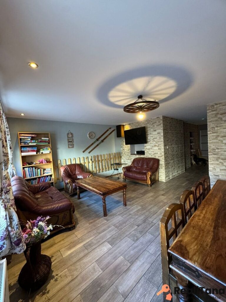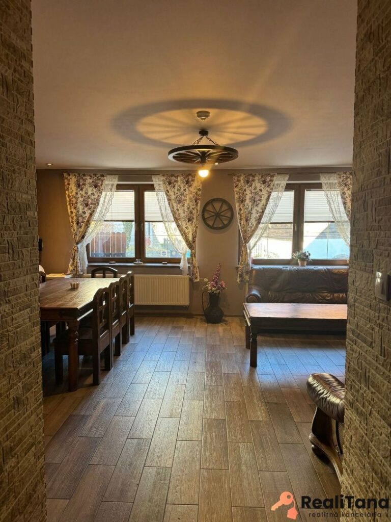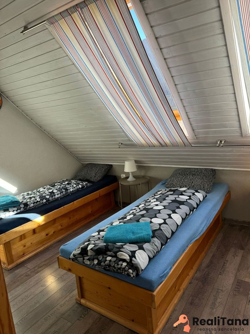 V súčasnosti sú v dome štyri byty. Dva pre 6 osôb, jeden pre 8 osôb a jeden pre 5 osôb. Okrem toho je v suteréne apartmán pre 4 osoby, momentálne využívaný majiteľom. V suteréne sa nachádza ďalšia miestnosť o výmere cca 30 m2, ktorú je možné po rekonštrukcii využiť napríklad ako biliardovú miestnosť. Na prízemí je veľká spoločenská miestnosť, určená pre všetkých hostí, kde je k dispozícii TV a audio technika – ideálne miesto na večerné stretnutie rodiny alebo párty mladých 🙂