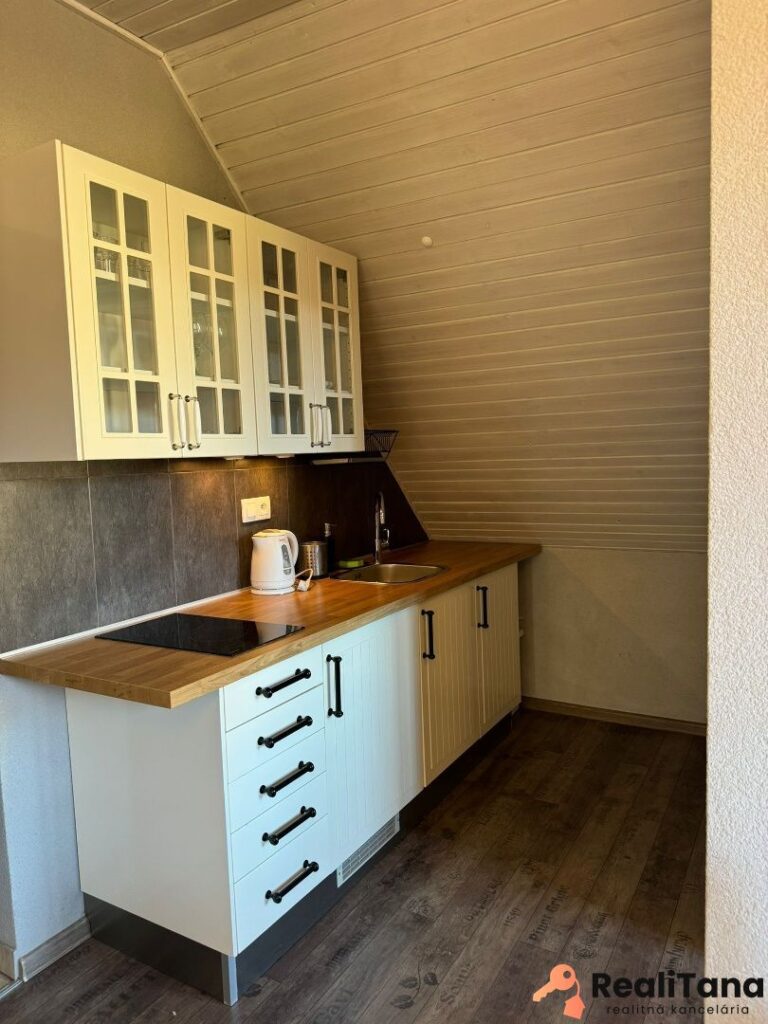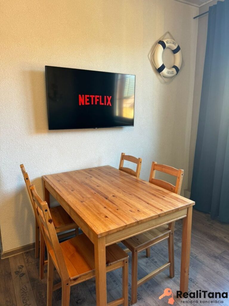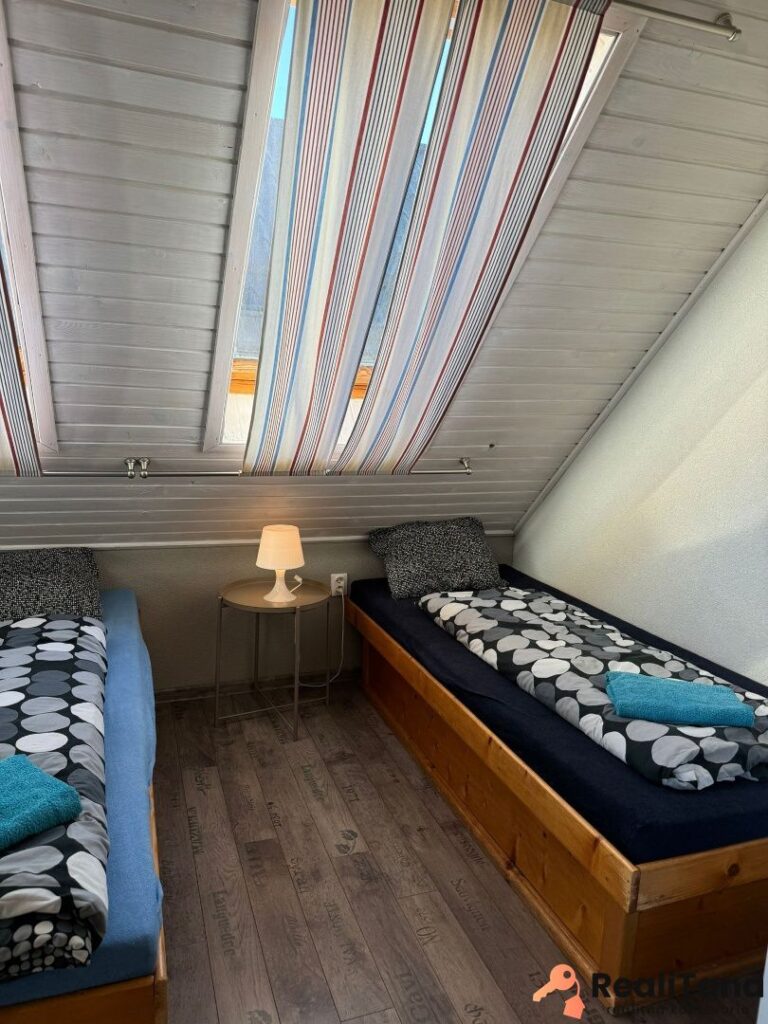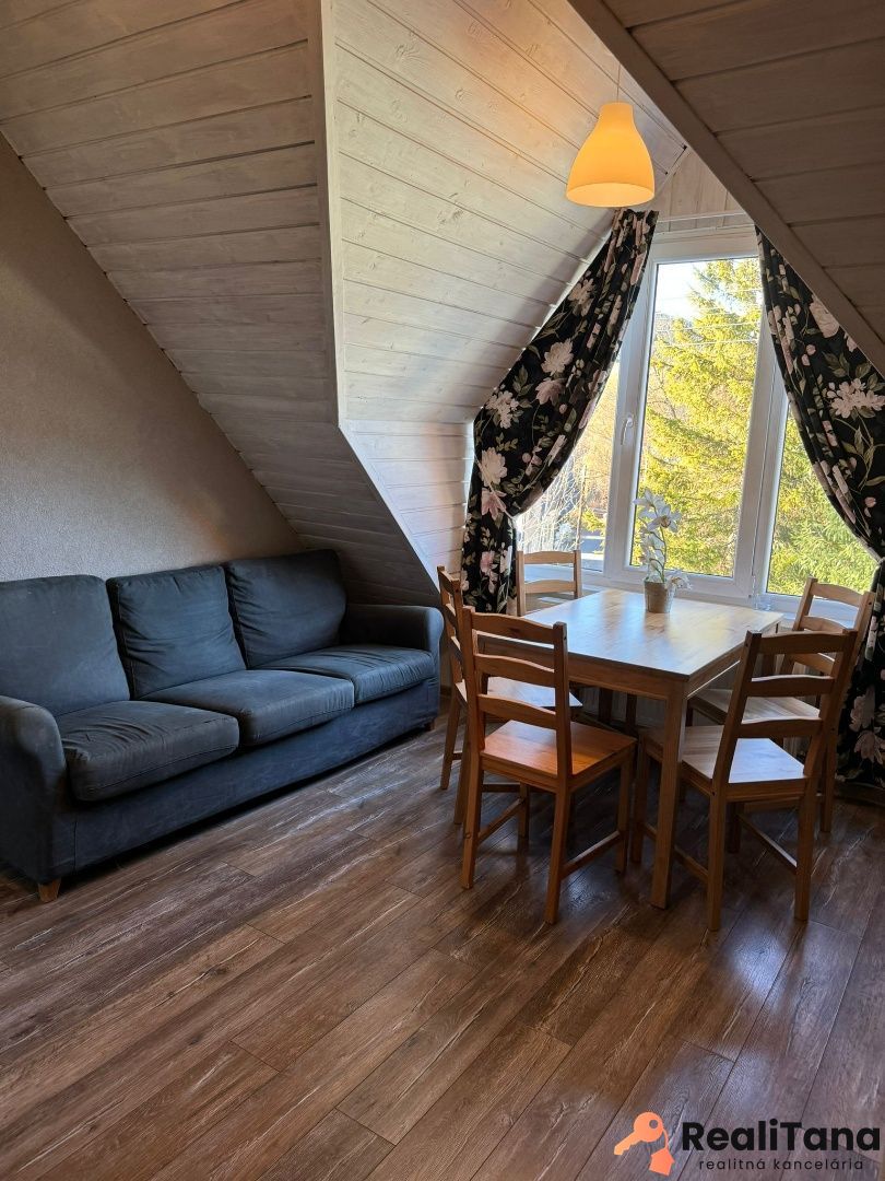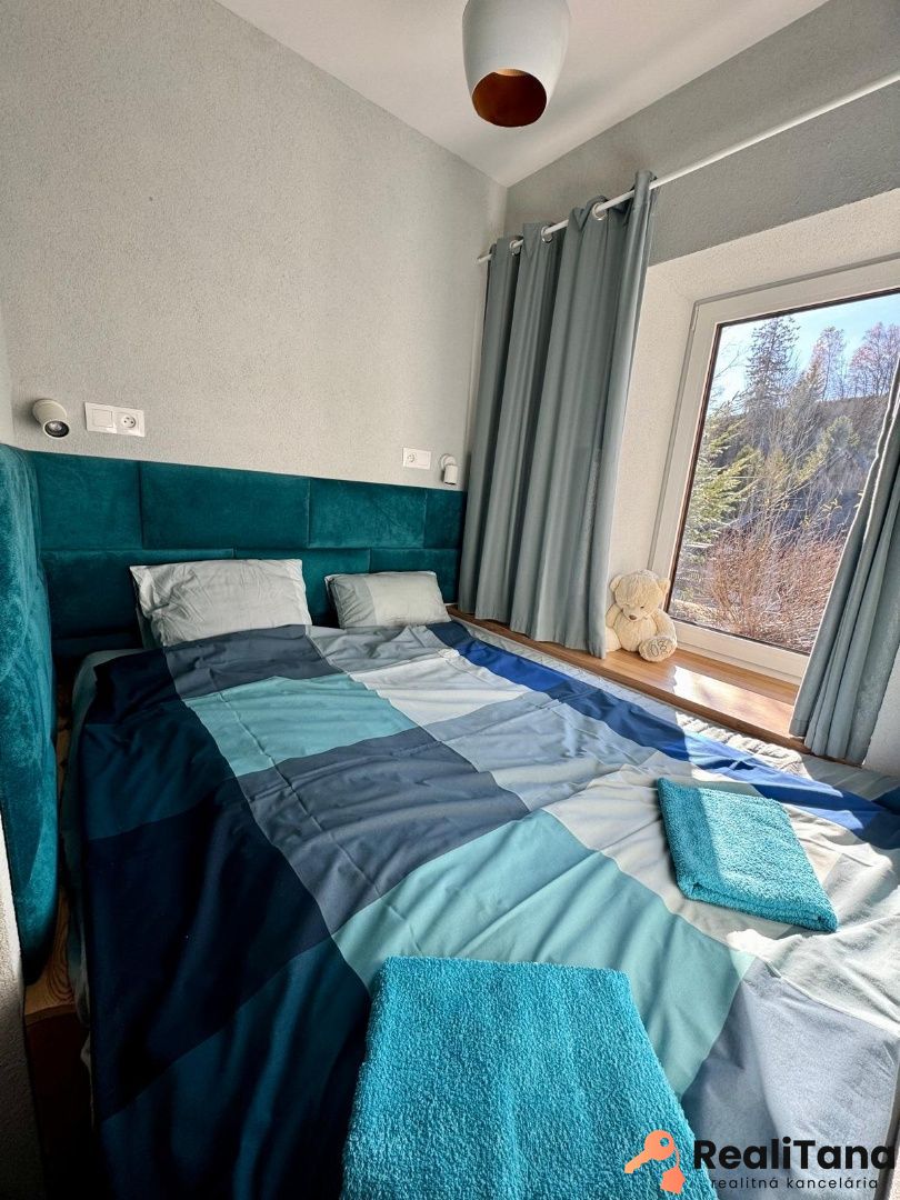V súčasnosti sú v dome štyri byty. Dva pre 6 osôb, jeden pre 8 osôb a jeden pre 5 osôb. Okrem toho je v suteréne apartmán pre 4 osoby, momentálne využívaný majiteľom. V suteréne sa nachádza ďalšia miestnosť o výmere cca 30 m2, ktorú je možné po rekonštrukcii využiť napríklad ako biliardovú miestnosť. Na prízemí je veľká spoločenská miestnosť, určená pre všetkých hostí, kde je k dispozícii TV a audio technika – ideálne miesto na večerné stretnutie rodiny alebo párty mladých 🙂